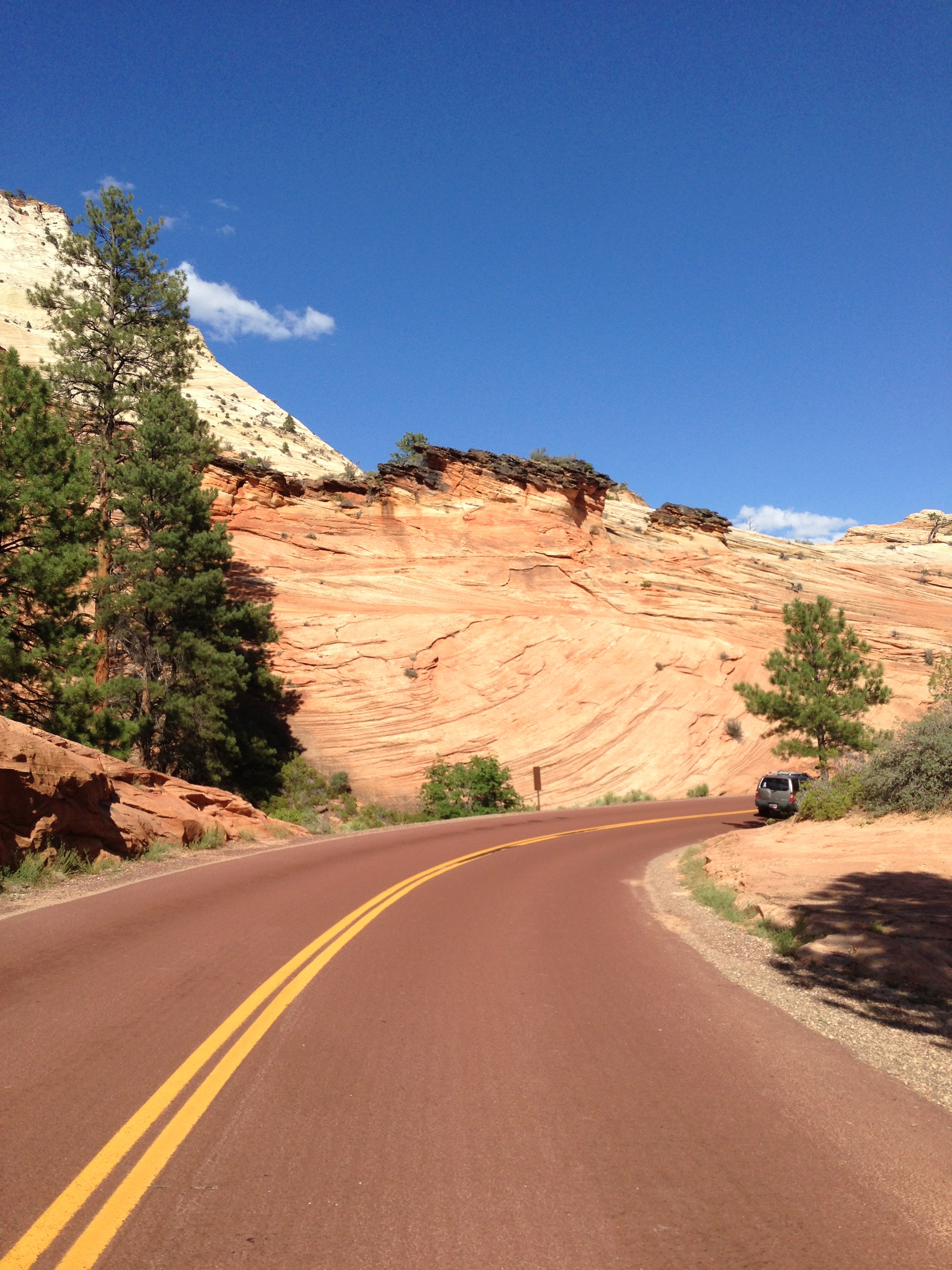 After lunch it was a two minute ride to the gates of Zion National park. The $12 charge of admission was well worth the entrance even if the park only spans seven miles West to East. Some of the rock formations were incredible and the red roads likely created from the same rock that surrounds your Zion experience were really unique to see. One thing that stood out to me was a one lane tunnel that allowed us to travel under a rock formation bringing you from one end of the park to the other. The tunnel wasn’t lit and would’ve had zero visibility if it weren’t for our headlights.