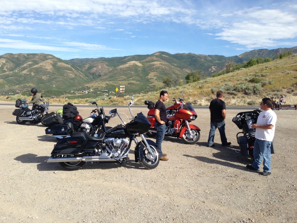 Two of my friends with whom I had rode last year met us at 9 AM for our ride. Salt Lake City natives Bert and Jamie pulled up on their orange and black road glides and greeted the group. We would put our paths in their hands today as they knew the roads to Jackson better than I.