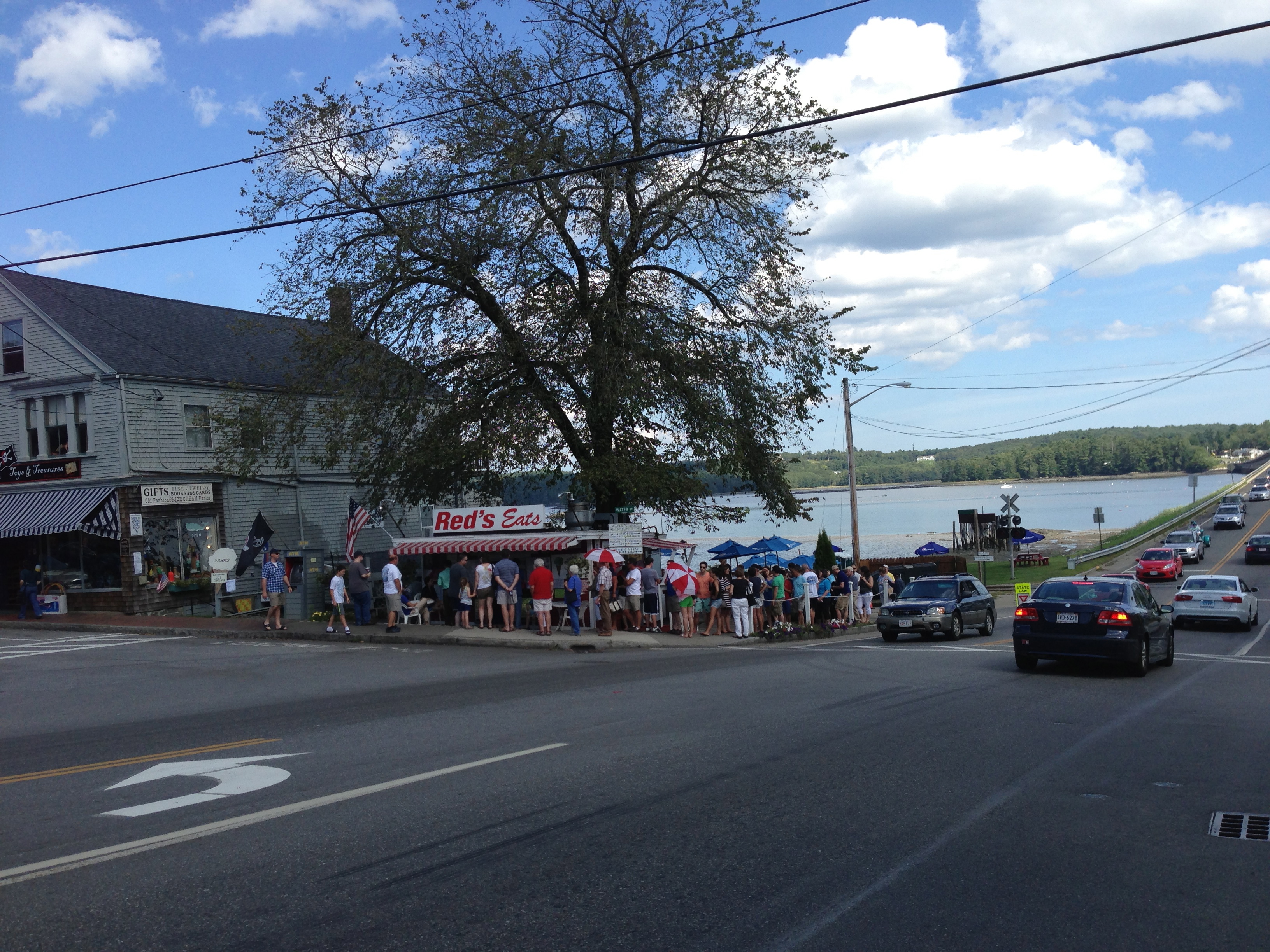 Take a left onto 127 and go down until you hit 27. Take a right when you do and continue to Wiscasset. Don’t blow through Wiscasset. If you do, you’ll miss a great little town and most importantly, Red’s Eats. Red’s has been voted the best Lobster Roll in the US by several publications far less distinguished than ours (USA today who?…). It’s over a pound of lobster meat and they give you melted butter on the side. Also, fried dough in case your bike is still getting decent gas mileage and you feel the need to add some weight.