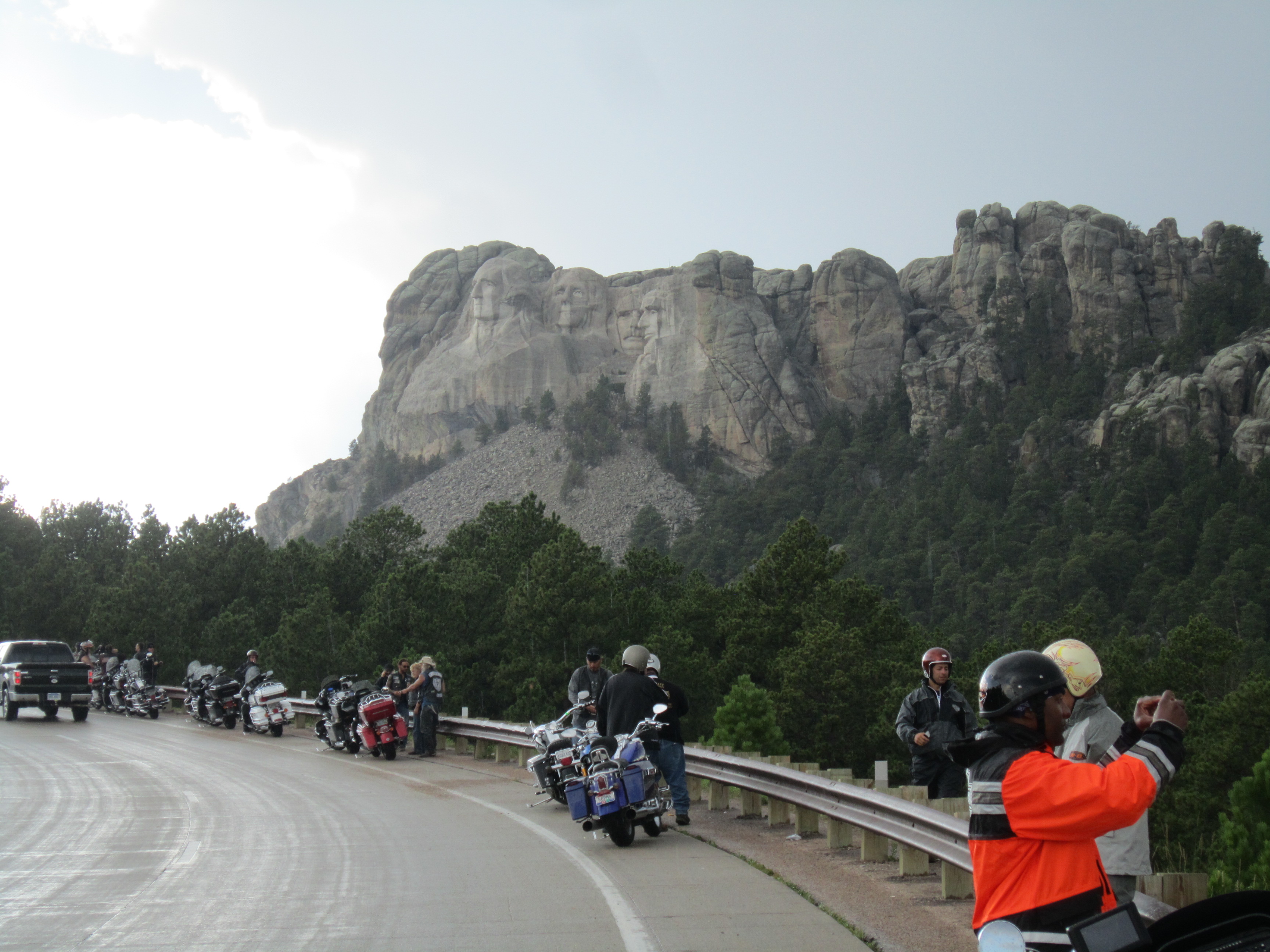The next day (Wednesday August 7, 2013) Jimmy would fix Josh’s bike and I would get some new wheels and fender put on. Josh’s bike runs and I would be on the lookout for new bolts for my fender as the Fat Bagger Industry adapter required 2 ¾ and 5/16 bolts that were hard to find at the shop. After going to J&P cycles across the street and only finding two of the necessary bolts, I would meet the guys at the Rapid City Harley Davidson shop and look for the remaining two bolts. Luckily the parts department had a handful of bolts and though they were 4” we could cut them and make them work. Mount Rushmore was 25 miles from Rapid City so we would set out with the clothes on our backs for this monument and for Crazy Horse.