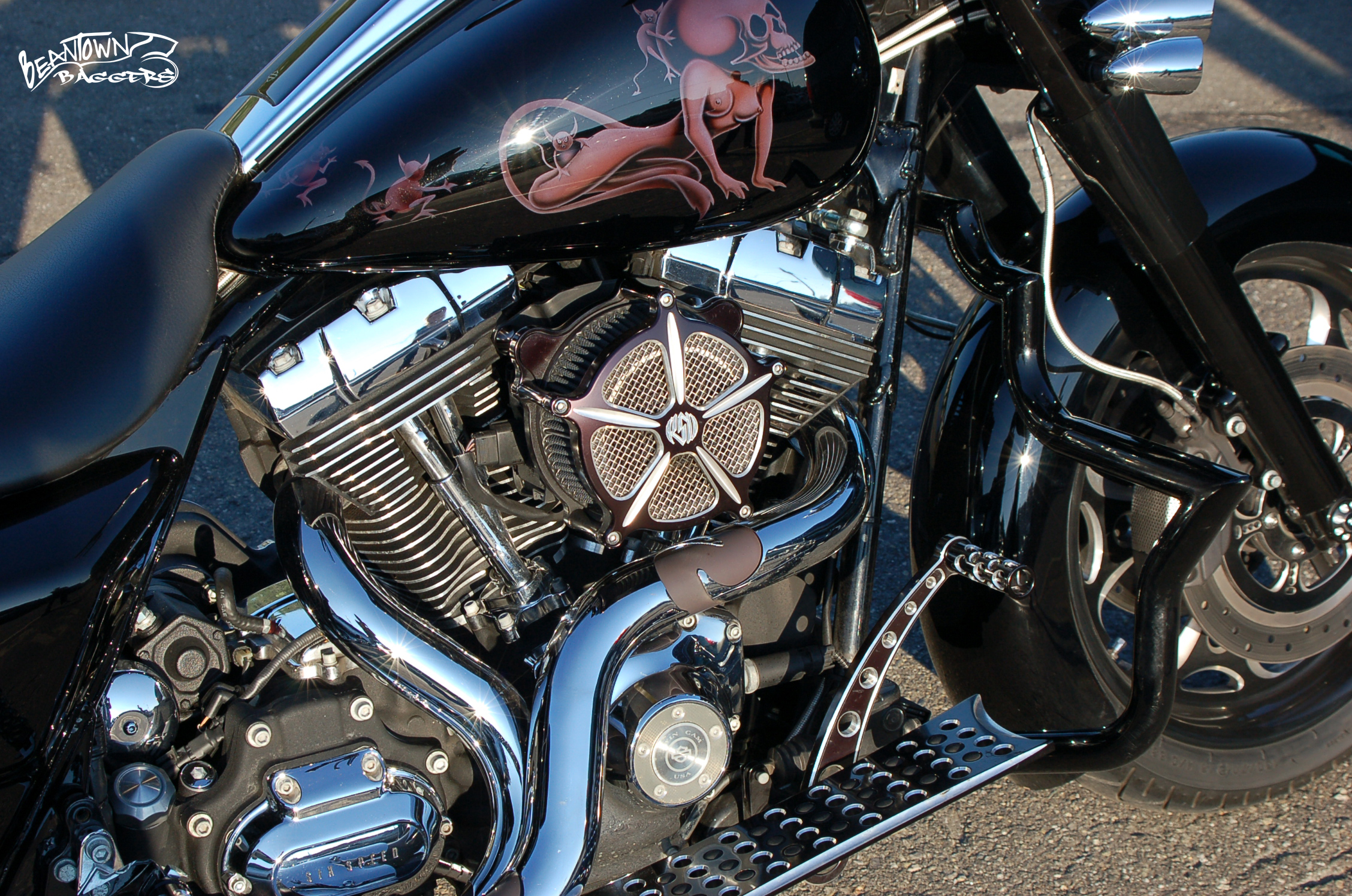 - Bad Dad Rear Fender and Stretched bags with the HD bar and shield & symbols built into the bags/fender respectively