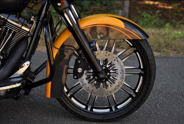 - custom black & contrast cut roland sands boss 21-inch front wheel with matching roland sands boss rotors