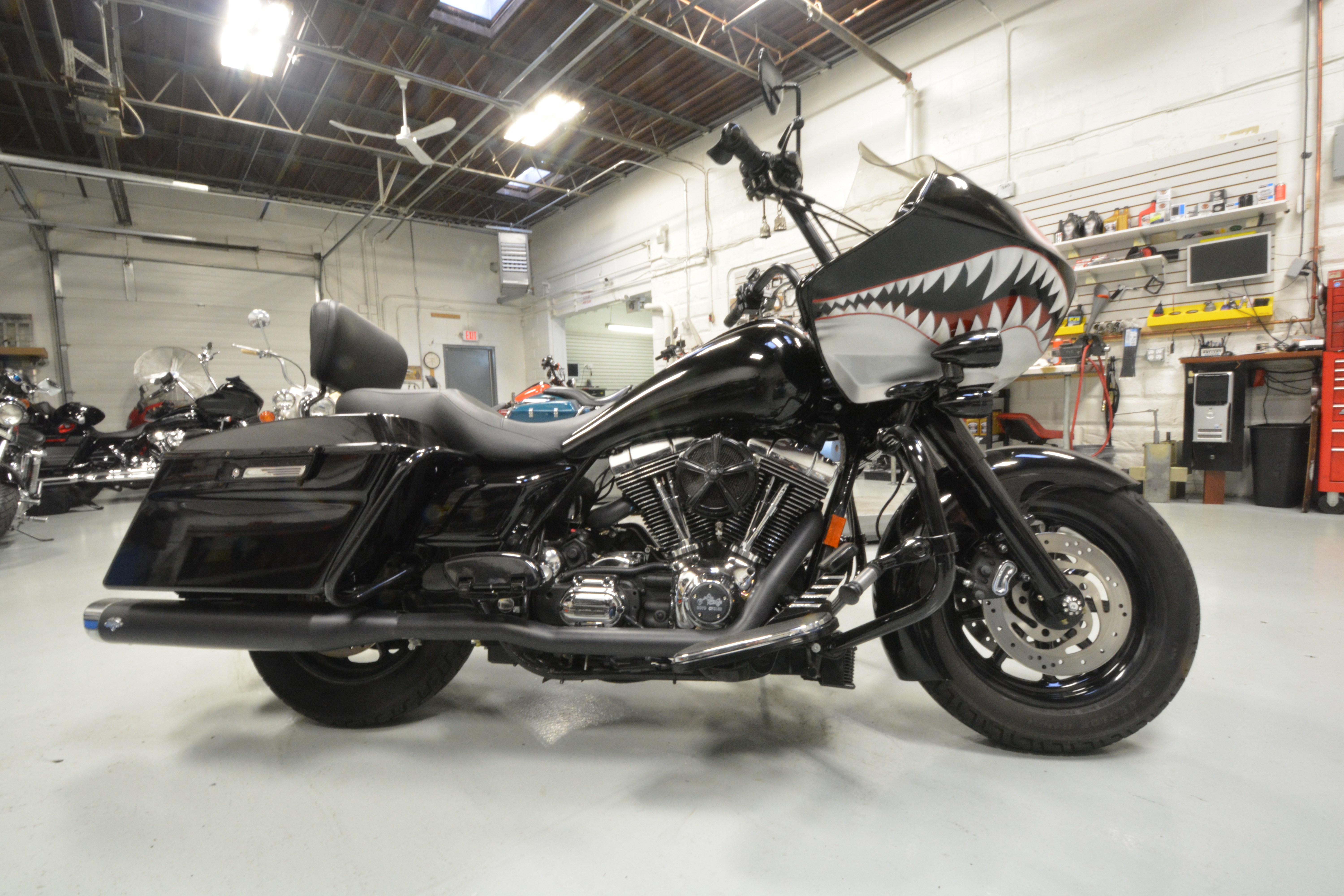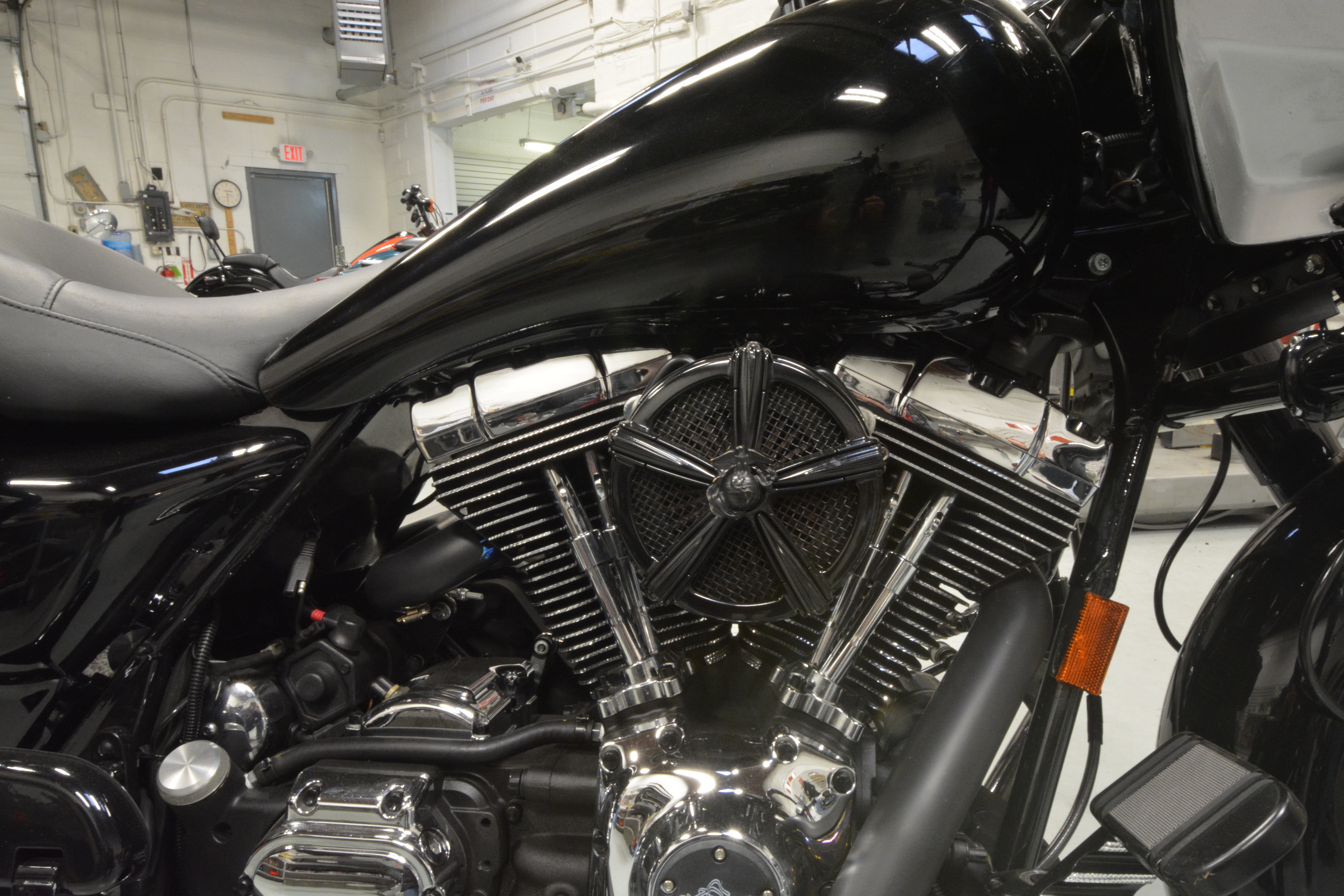 RB: We’re about 75% baggers, a few old Harleys and some other random stuff. We do a ton of cams, three a week sometimes. We really try to improve the ride of any bike that comes in here. Suspension is big, good tires, bars and controls are pretty popular. We do some of the big wheel raked out bagger work but that’s not for everybody and we want to make riding more enjoyable.