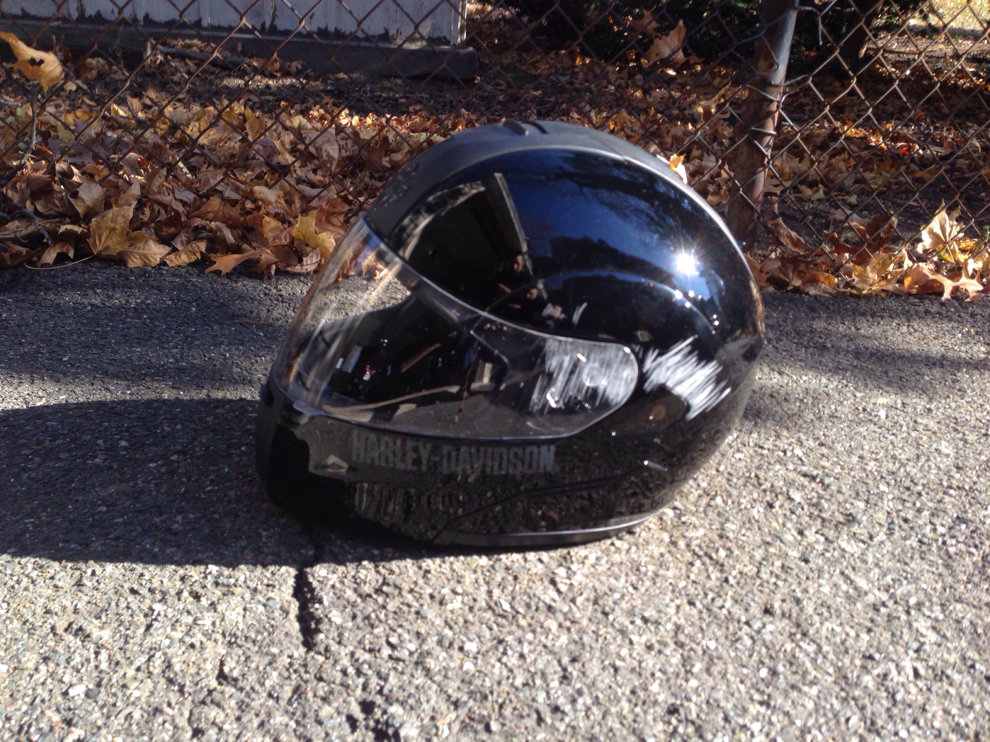 As mentioned above, I was wearing a Harley Davidson modular helmet.  Historically I haven’t felt compelled to do much more than put a string on a piece of tupperware and stick a fake DOT sticker on the back – not street legal but nobody seemed to care.  Short of that, I would use a novelty helmet with enough stickers that might slightly cushion a fall.
