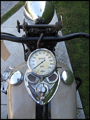 This Flathead features the recirculating oil system introduced on all H-D engines in 1936 (originally on the Knucklehead). Additional, but smaller changes to 1938 bikes were higher handlebars for more comfortable riding position, the instrument panel was simplified by replacing the ammeter with a red warning lamp and the oil-pressure gauge with a green lamp, new colors and striping made available.