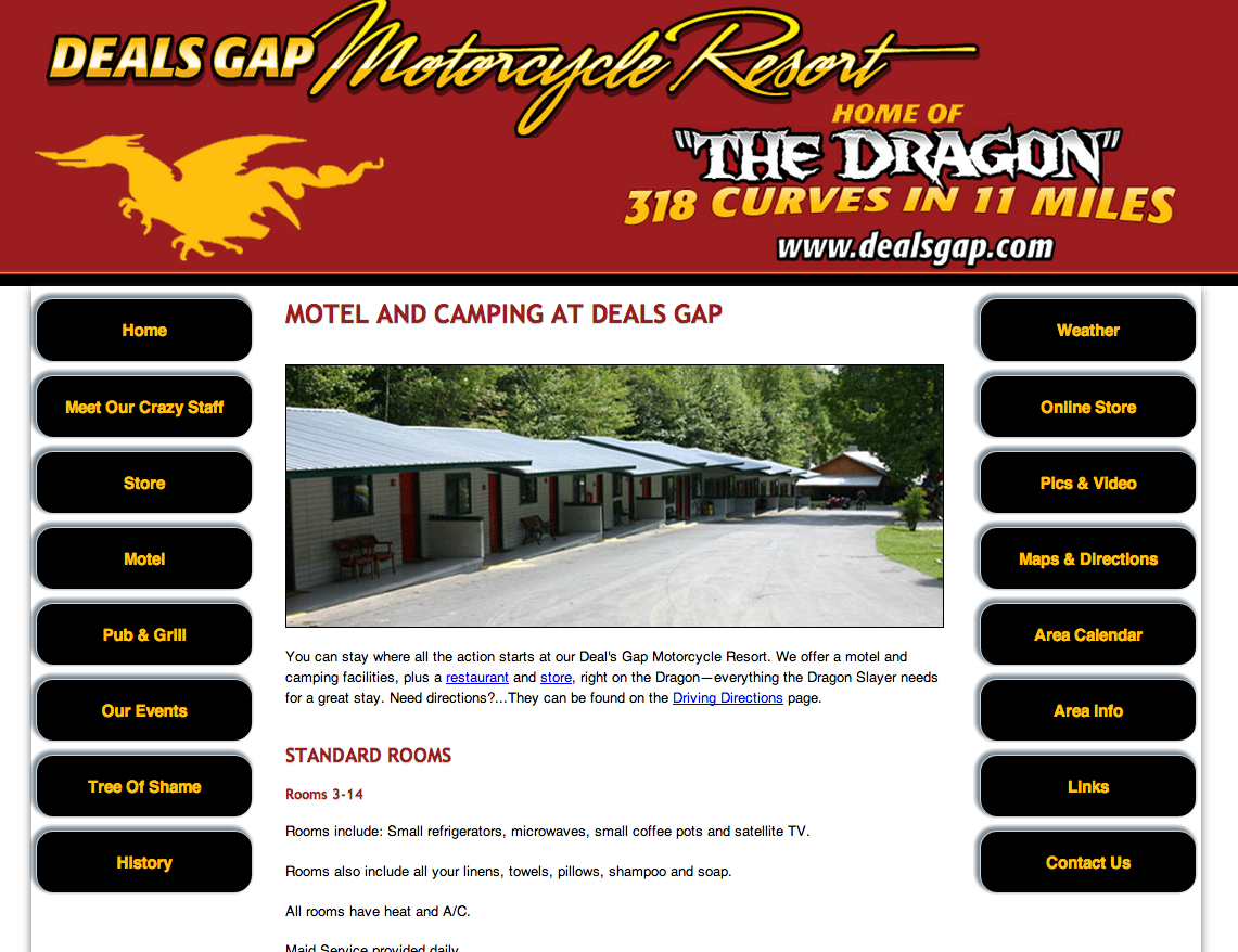 - A gift certificate to stay at Deals Gap on the Tail of the Dragon in North Carolina