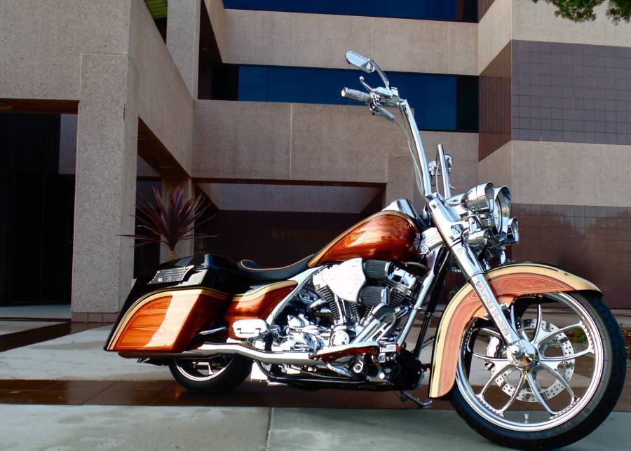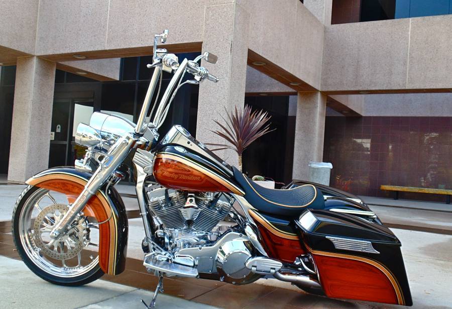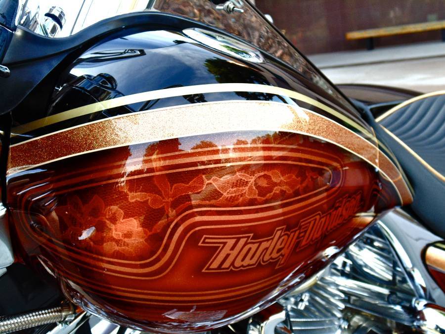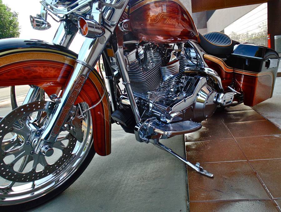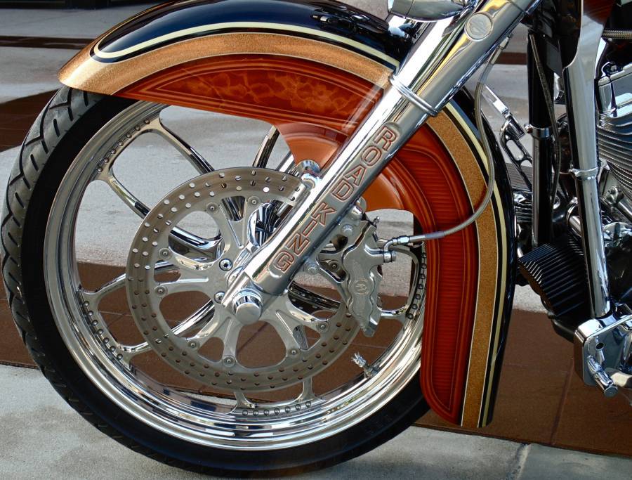 $10,000 Paint Job – Base Coat Candy Root Beer, House of Color Black, Candy Gama Gold Lace Patterns, Gold Flake Stripe.