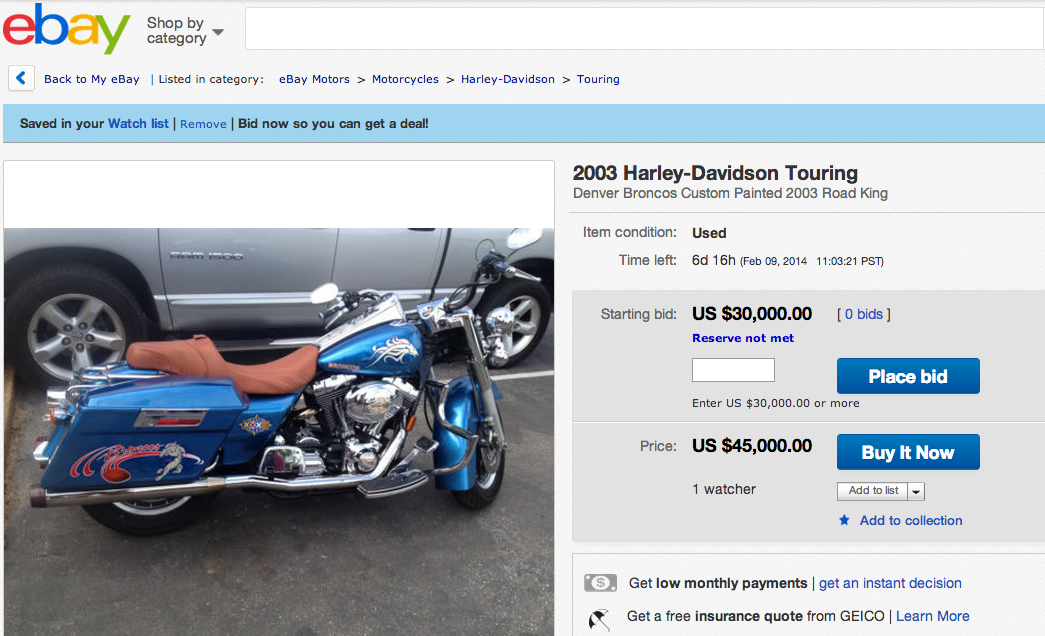 Apparently tonight’s monumental choke by the Denver Broncos has even soured some die hard fans. This Broncos Bagger has just gone up for sale on eBay. And the faithful will exit to the left. ebay listing found here http://bit.ly/1bT0lId